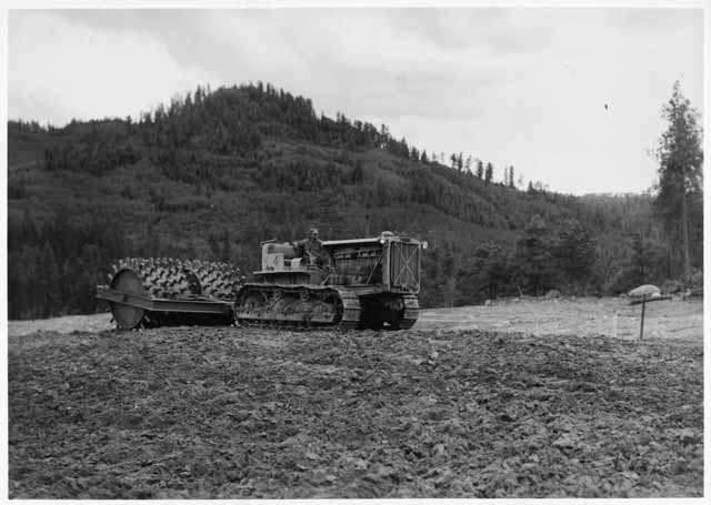 Rolling semi-impervious section of embankment. (Roller is the No. 1 roller. Note cant of carriage frame.) |