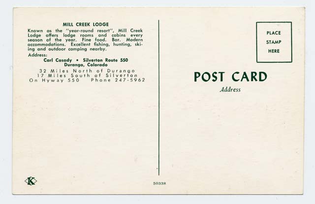 | Title: Mill Creek Lodge (Durango, Colo.) | Year/era: 1945/1998 | Call#: SWM 194, | |