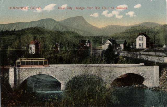 | Title: New city bridge of Rio de Los Animas (Durango, Colo.) | Year/era: 1907/1914 Divided Back | Call#: SWM 194, Vol. 1, item #27 | |