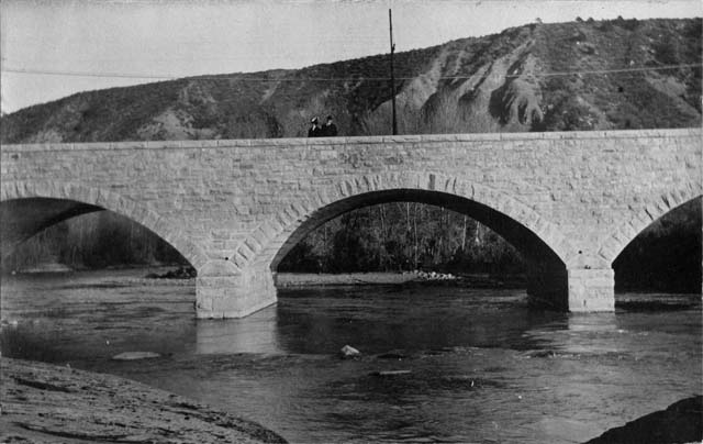 | Title: Stone bridge over the Animas River (Durango, Colo.) | Year/era: 1907/1917 Divided Back | Call#: SWM 194, Vol. 1, item #30 | |