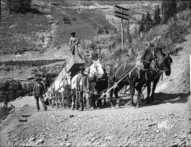 | Title: Six-horse team pulling a wagon with a large timber on it | Negative#: 1512 | |