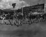 | Title: Durango Fiesta (Durango, Colo.) 1955 Call#: SWP 001 I-09-47; Negative# (if any): Photographer (if known): Subjects ~ Notes: Durango (Colo.) ~ A marching band in the Durango Fiesta parade wearing Indian costumes. |