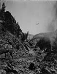 | Title: Mountain railroad curve, possibly in Eagle Canon (Colo.) Call#: SWP 001 III-02-26; Negative# (if any): Photographer (if known): Subjects ~ Notes: Mountain railroads - Colorado - Pictorial works; Eagle Canon (Colo.) ~ Railroad tracks next to a rocky hillside. |