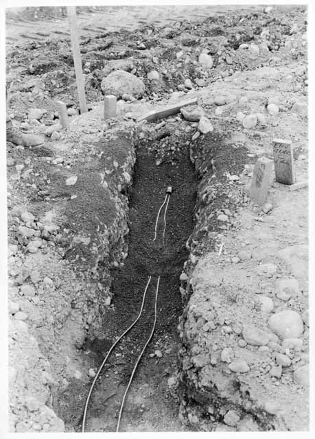 Close-up showing installation of piezometer tip at station 11+75. 45 feet upstream from axis, elevation 7640. |