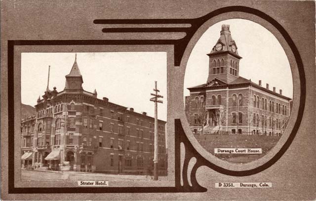 | Title: Strater Hotel and Durango Courthouse (Durango, Colo.) | Year/era: 1907/1914 Divided Back | Call#: SWM 194, Vol. 1, item #73 | |