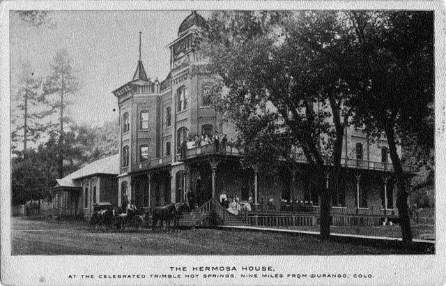 | Title: Hermosa House at the celebrated Trimble hot springs, 9 miles from Durango | Year/era: 1907/1914 Divided Back | Call#: SWM 194, Vol. 1, item #110 | |