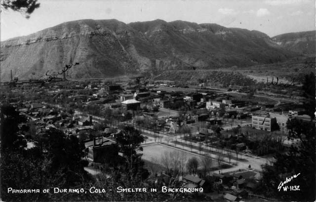 | Title: Panorama of Durango (Colo.) - smelter in background | Year/era: 1904/1920's Real Photo | Call#: SWM 194, Vol. 1, item #155 | |