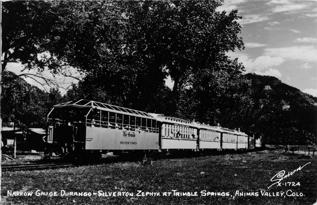 Title: Narrow gauge Durango-Silverton Zephyr at Trimble Springs, Animas Valley, Colo. Year/era: 1945/1998