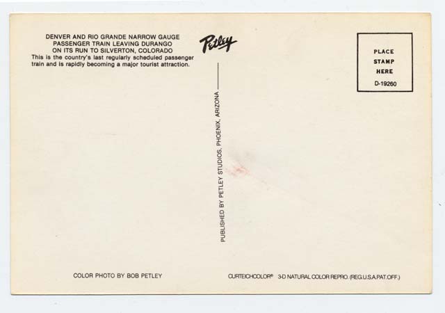 Title: Denver and Rio Grande narrow gauge passenger train leaving Durango (Colo.)