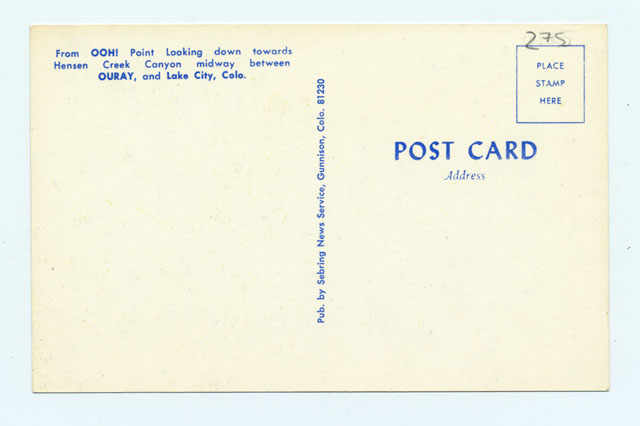 | Title: Ooh! Point between Ouray and Lake City, Colo. | Year/era: 1945/1998 | Call#: SWM 194, | |