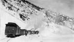 | Title: Train plowing snow between Needleton and Elk Park (Colo.) Call#: SWP 001 III-01-115; Negative# (if any): Photographer (if known): Subjects ~ Notes: Denver & Rio Grande Western Railroad (Colo.); ; Railroads - Colorado - Needleton - Snow protection and removal; Needleton (Colo.) ~ The train is below a snowy hillside. |