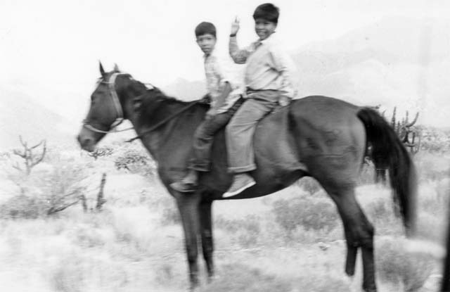 | Title: Two young Tohono O'Odham boys on horseback | ||