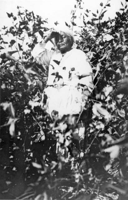 | Title: Tohono O'Odham woman standing among small trees | ||
