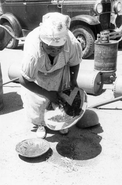 | Title: Sarah Saraficio (Tohono O'Odham) washing a basket | ||