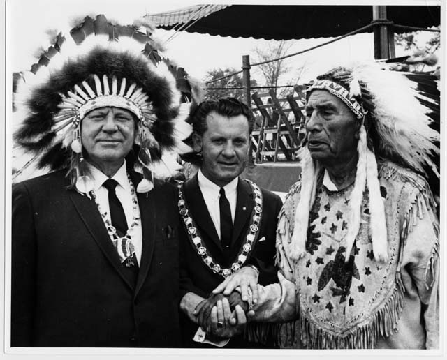 | Title: Chief Clinton Rickard and the mayors of Niagara Falls, group portrait photo | ||