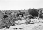 | Notes: | View of three structures with partial standing dry laid sandstone walls situated along a canyon rim. A gentleman is standing at the rim of the canyon near one of the structures and looking through binoculars down into the canyon floor. Two numbers written on sleeve 1447 and (more recently) 441. Also typed on sleeve is "Hovenweep ruins part way down" | |