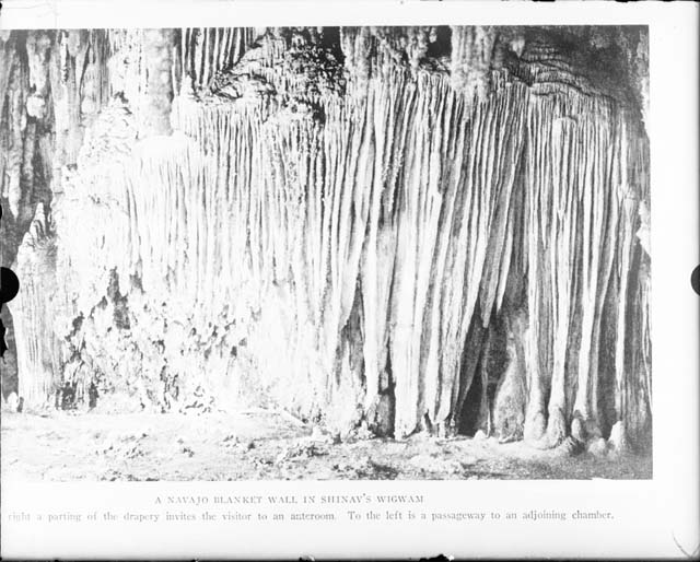 | Title: A Navajo blanket wall in Shinav’s wigwam (Carlsbad Caverns, N.M.) | Negative#: 2012 | |