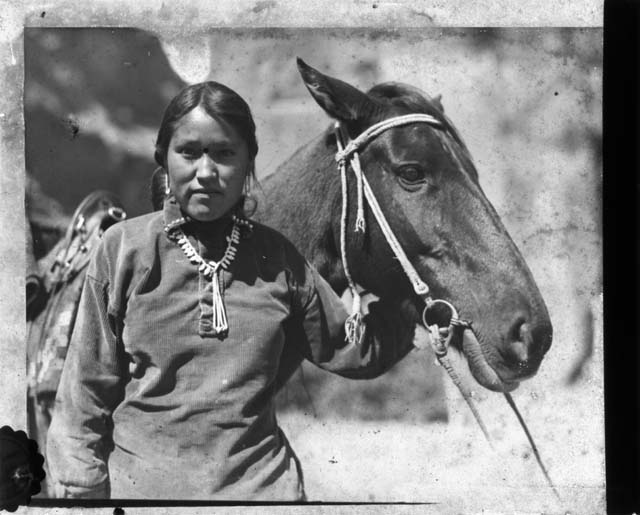 | Title: Indian woman with horse in the Southwest | Negative#: 2037 | |