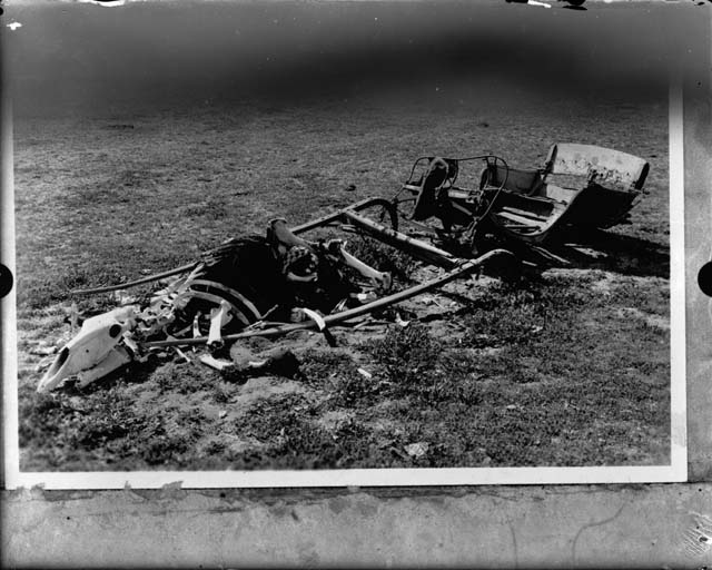 | Title: Skeleton of horse and wagon | Negative#: 2099 | |