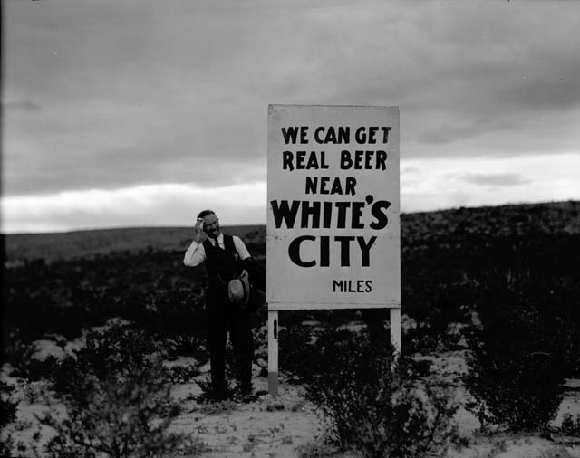 | Title: Billboard "we can get real beer near White's City" (near Carlsbad Caverns, N.M.) | Negative#: 2158 | |