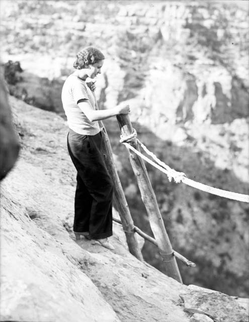 | Title: Woman at top of a ladder at Mesa Verde (Colo.) cliff dwellings | Negative#: 2340 | |